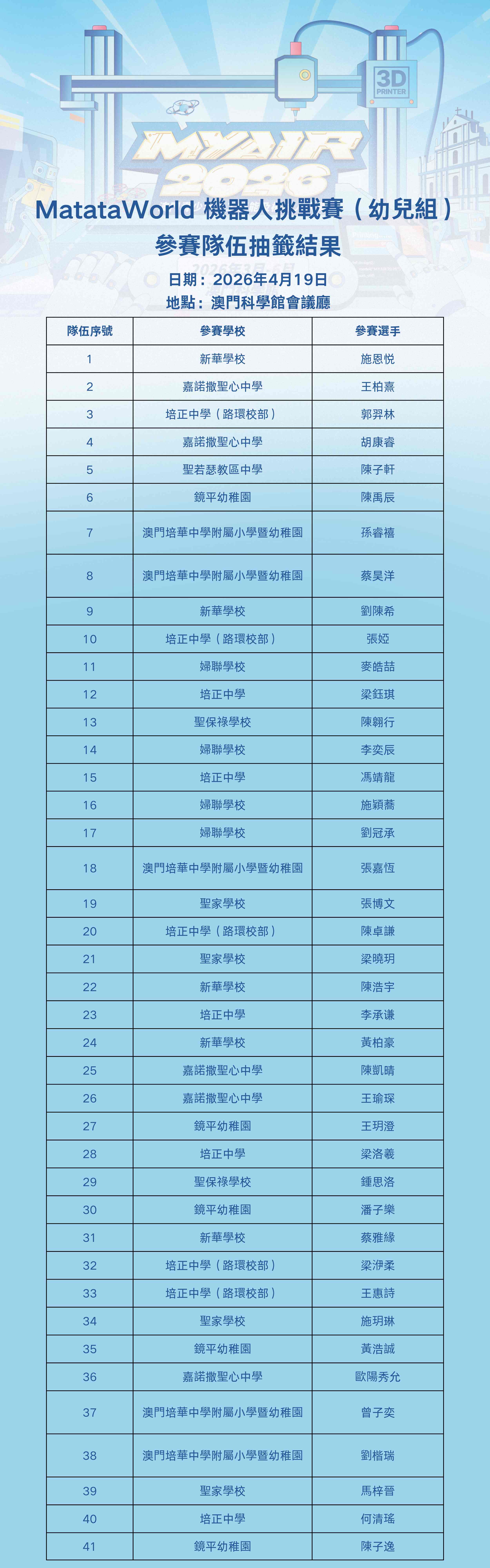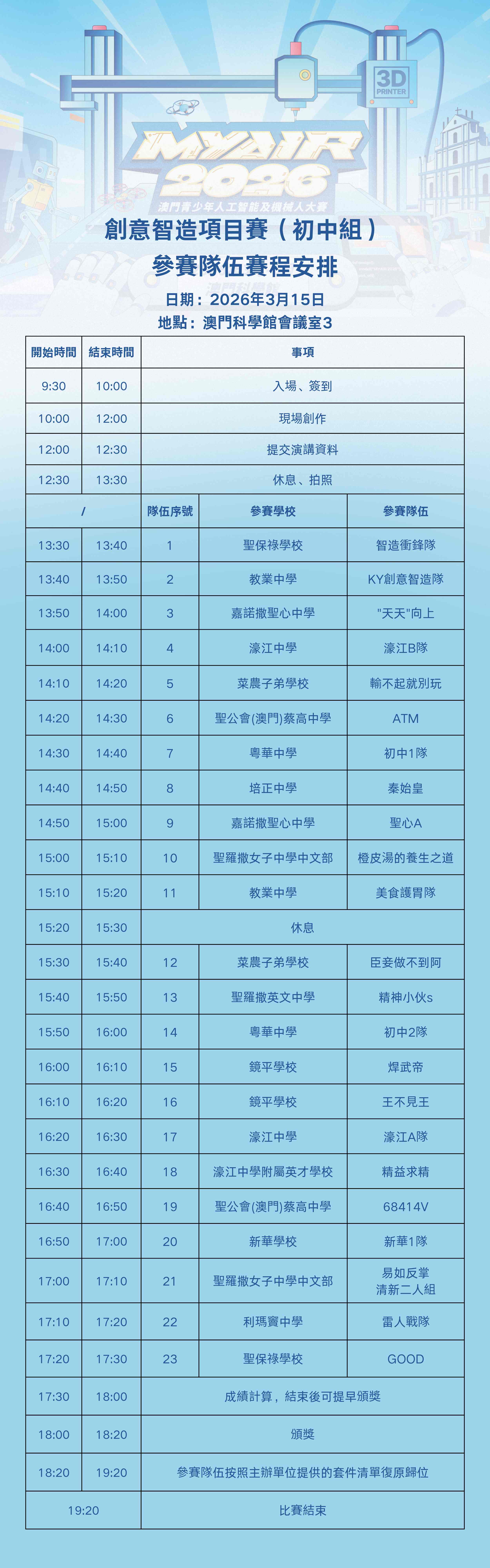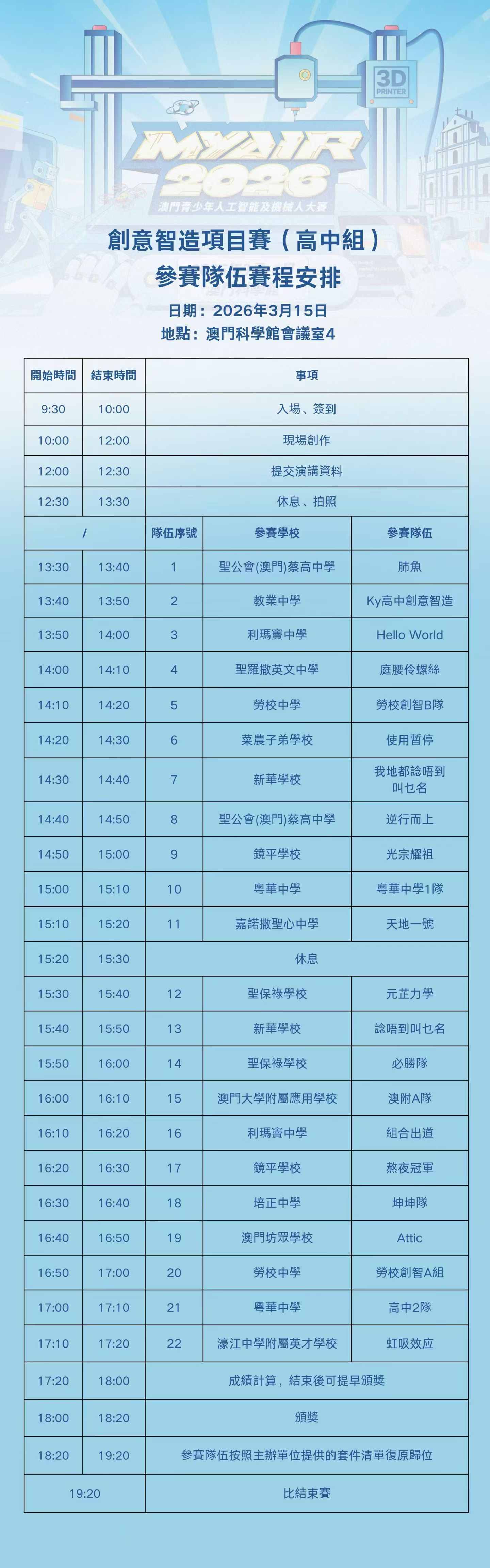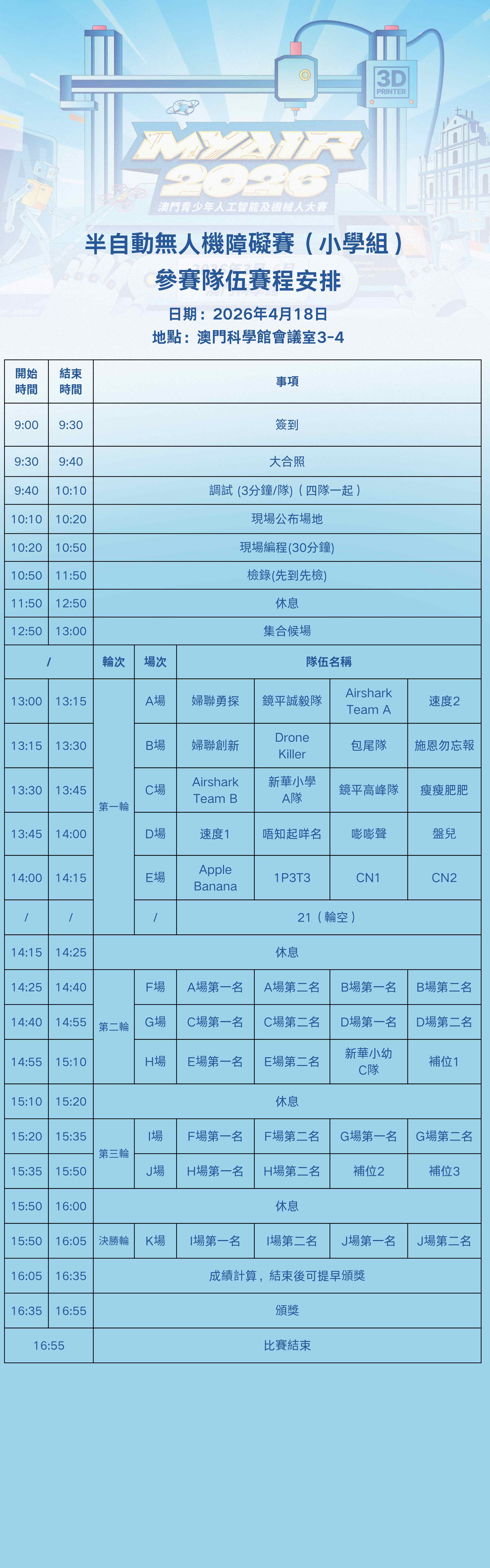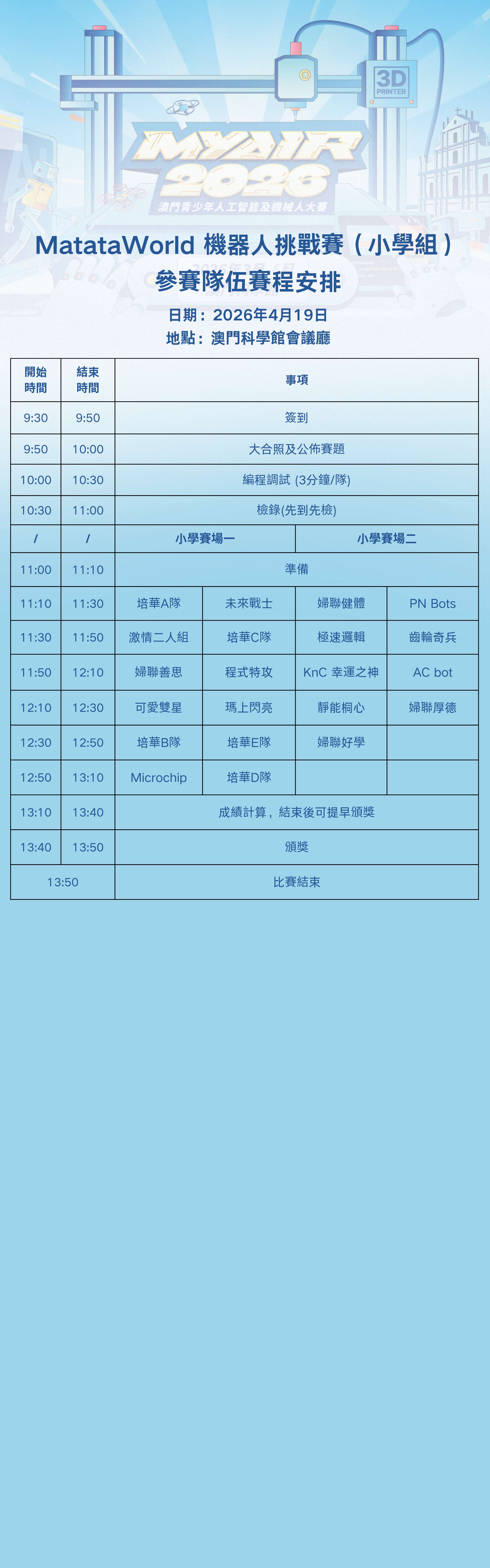 作為澳門具影響力的人工智能和機械人競技比賽,「MYAIR2026 澳門青少年人工智能及機械人大賽」是為澳門青少年工程師打造的集知識積累、技能培養、探究性學習於一體的普及性科技教育活動及機械人競技比賽。