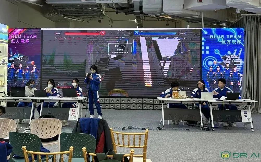 3月18日下午,來自澳門培正中學的四支參賽隊伍集合於DR.AI人工智能體驗中心,帶著衝勁與熱情,展開了激動人心的「機甲大師空地協同對抗賽」校內賽!這不僅是對參賽隊伍長期備賽成果的考驗與展現,DR.AI更提供實體賽場,令參賽選手對最終賽場及大賽規則更加了然於心?