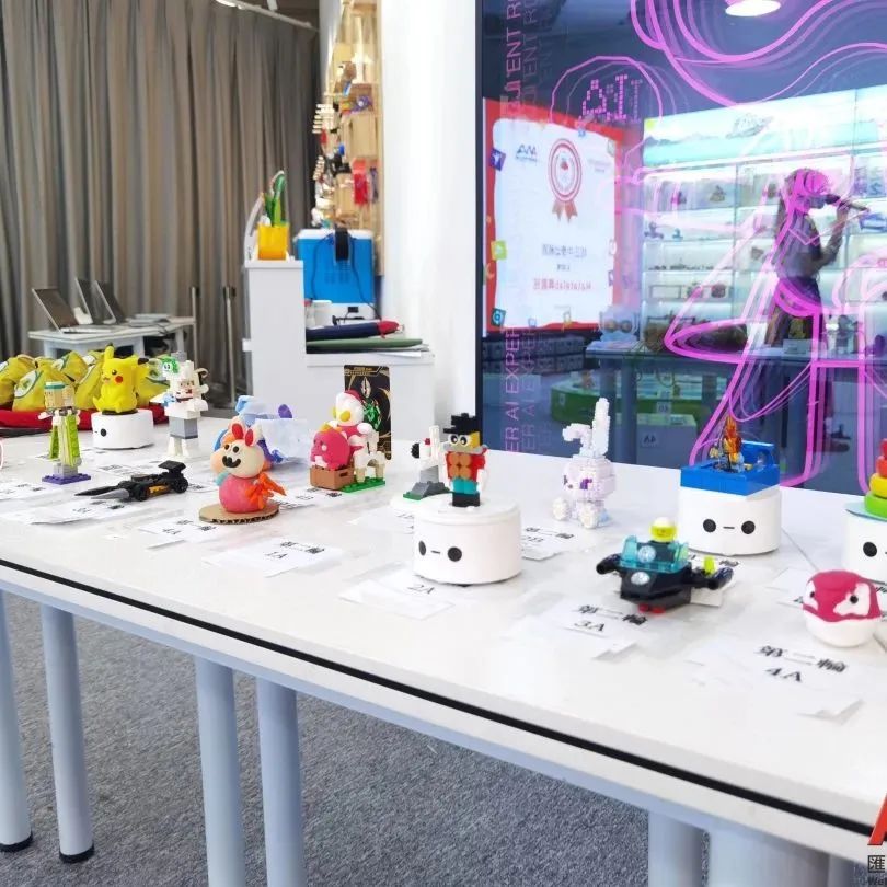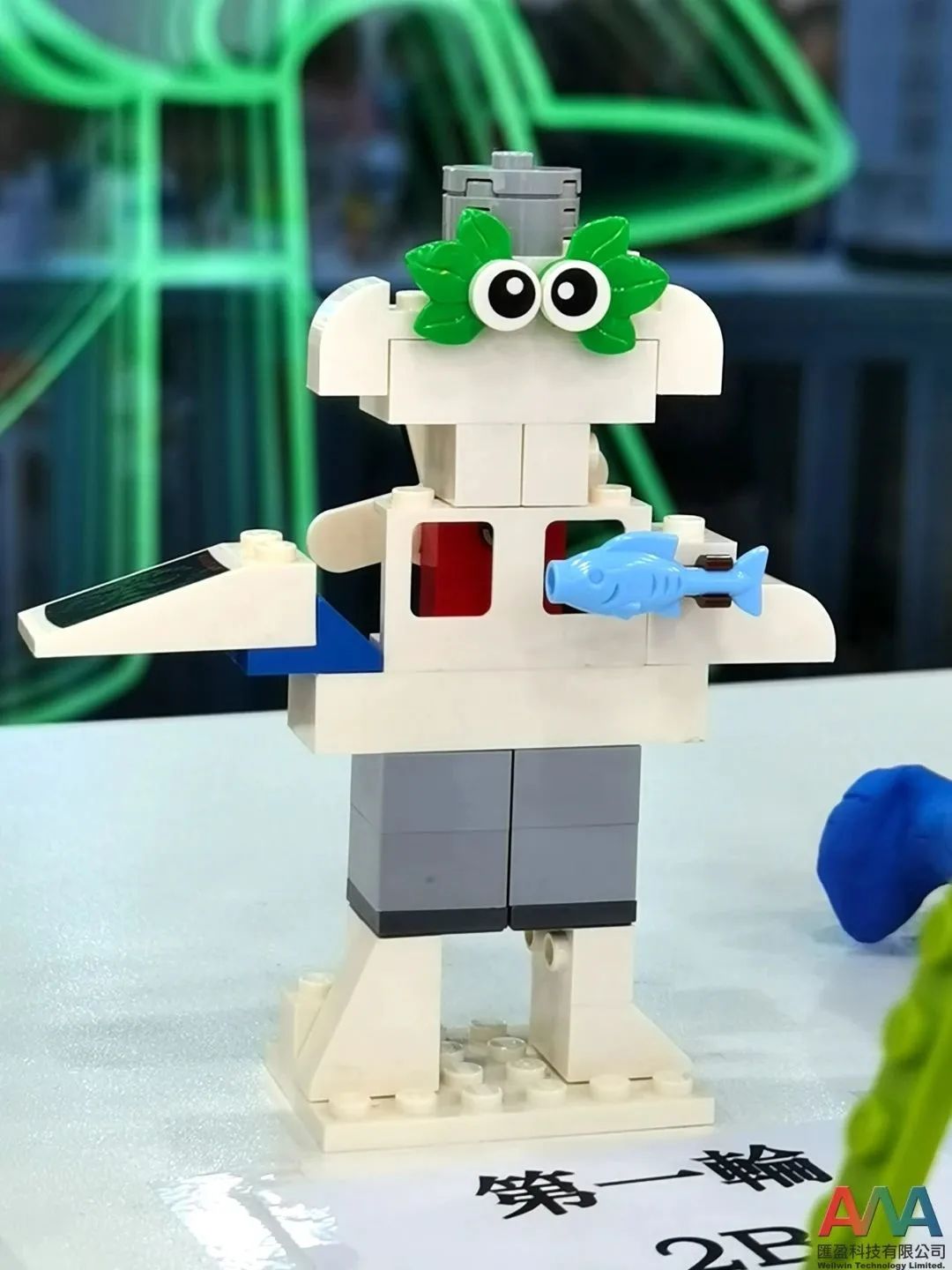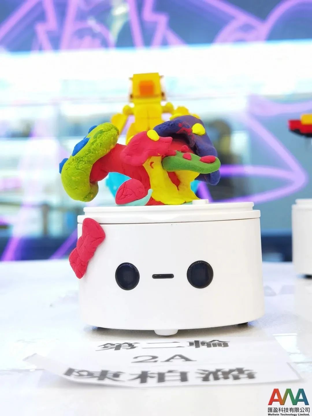 小朋友們一到場就迫不及待地拿出自己精心設計的機械人,素淨的展示台上瞬間被填滿了繽紛的童真創意色彩~