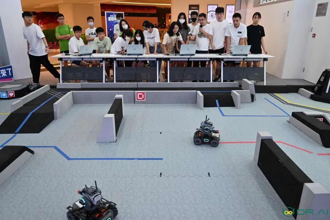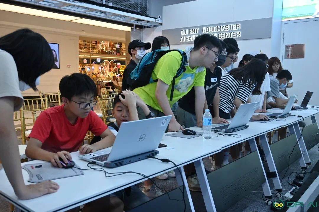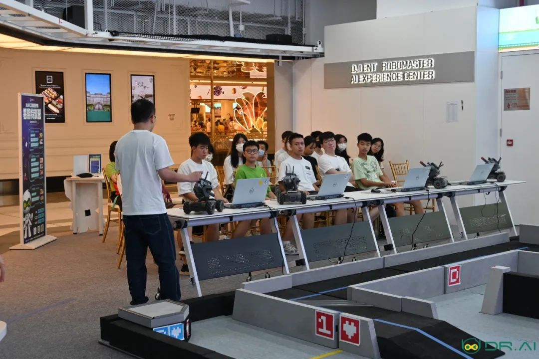 在講解之後,DR.AI迅速為大家組織了一場熱身挑戰——定點射擊任務賽?同學們在親手操控中體驗到機械人視覺識別的應用,在速度與準確率的不斷攀升中感受人工智能的魅力!雙手控制著機械人的雲台與底盤,就能讓機械人聽你盡情指揮,不少同學已經熟練上手,在短時間內就衝上榜單頂峰?