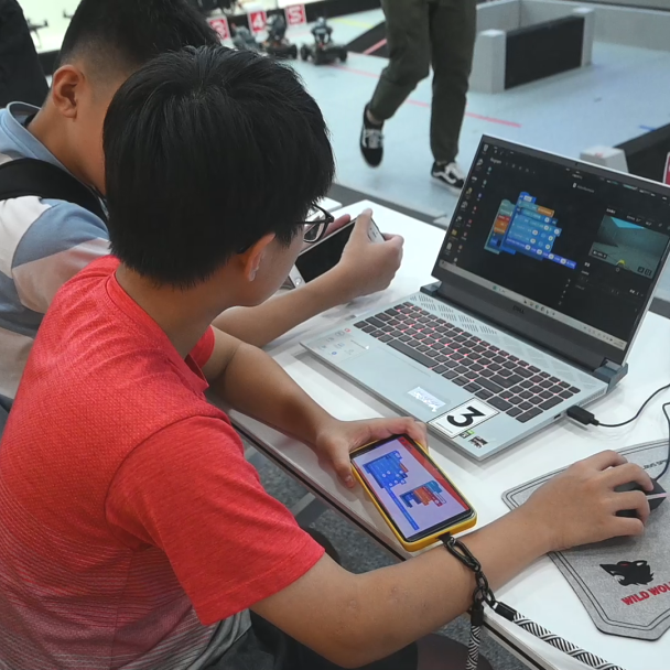 在射擊挑戰燃起同學們的熱情之後,老師即提醒大家將進入到更複雜的“關卡”——機械人巡線挑戰!從模擬器的功能使用,到不同程式模塊的區分;從“走出十字軌跡”的小任務,到變量序列的識別與編寫,同學們神色越漸專注,不敢錯過每一個知識點,更不斷積極向老師提出疑問,希望自己能更快更好吸收到滿滿的乾貨內容?♂️?♀️