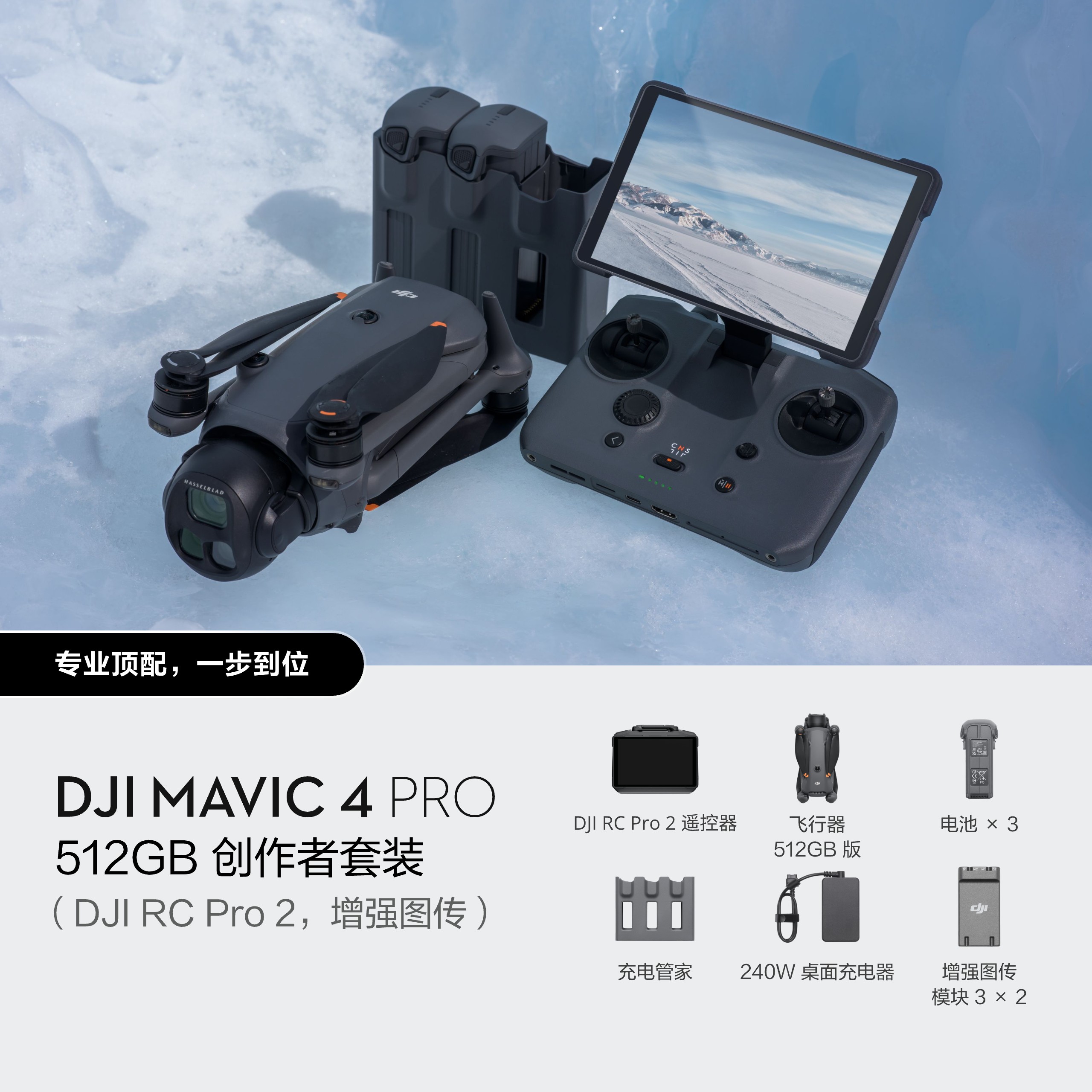 DJI Mavic 4 Pro 是大疆最新旗艦航拍無人機,搭載三鏡頭系統,包括1億像素4/3吋哈蘇主相機(支援6K/60fps HDR錄製)、70mm中長焦(4800萬像素)及168mm長焦鏡頭(5000萬像素),三鏡均支援4K/60fps HDR與雙原生ISO融合技術。配備360°旋轉萬象雲台,可實現70°仰拍與多角度運鏡,並搭載0.1 Lux夜景級全向避障與前視雷射雷達,確保夜間飛行安全。採用DJI O4+圖傳,最遠傳輸距離達30公里,並支援10-bit HDR即時畫面。續航時間最長51分鐘,搭配DJI RC Pro 2遙控器(7吋Mini-LED螢幕),適合專業創作者。