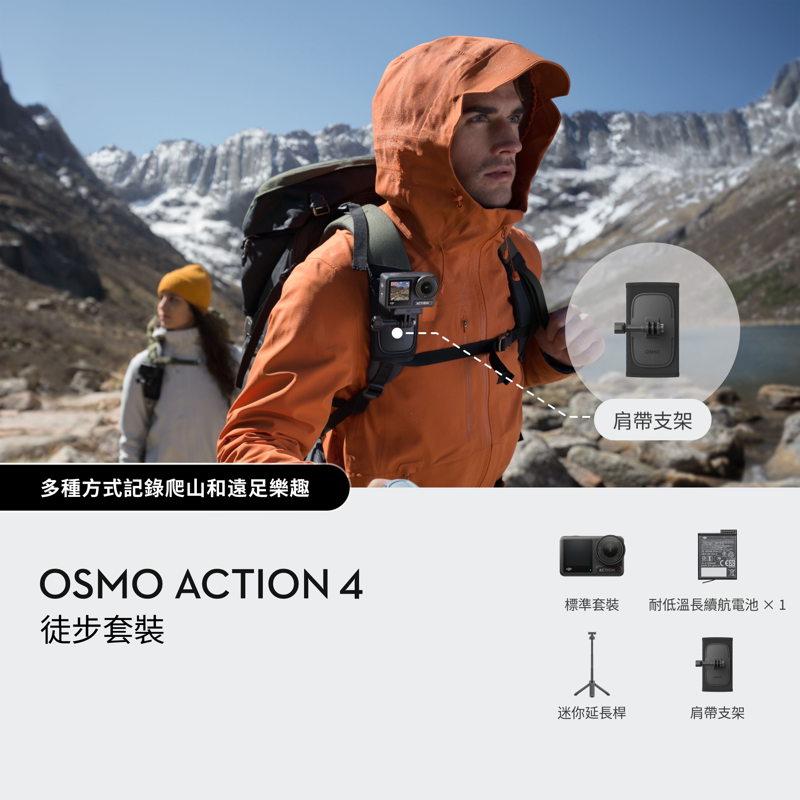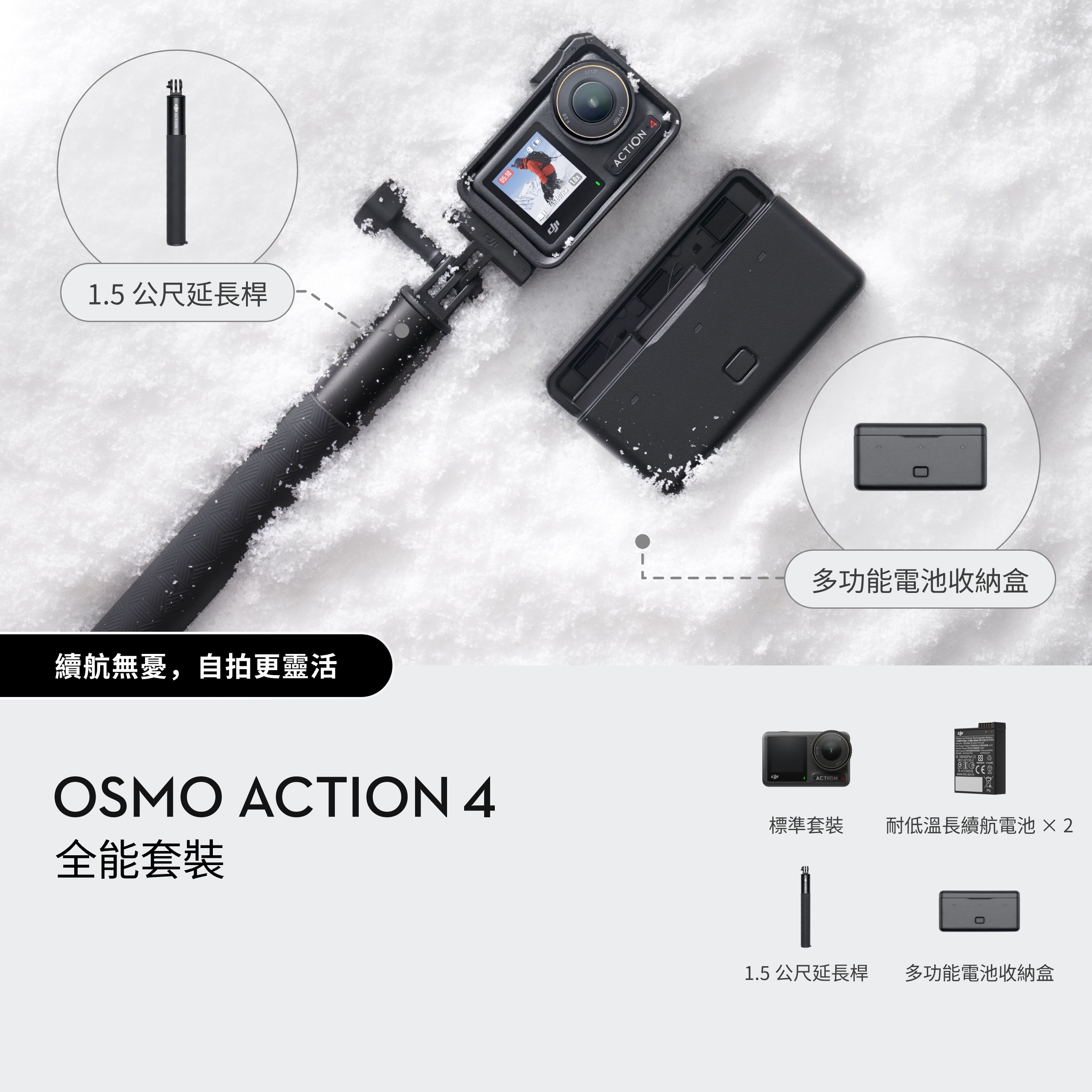 Osmo Action 4 輕巧堅固,裸機防水達 16 米,1/1.3 英寸傳感器可拍 4K/120fps 影片。具智能防抖 5.0,畫面平穩流暢,支援時光慢門等模式,續航持久,雙觸控屏操作便捷,適各戶外場景。