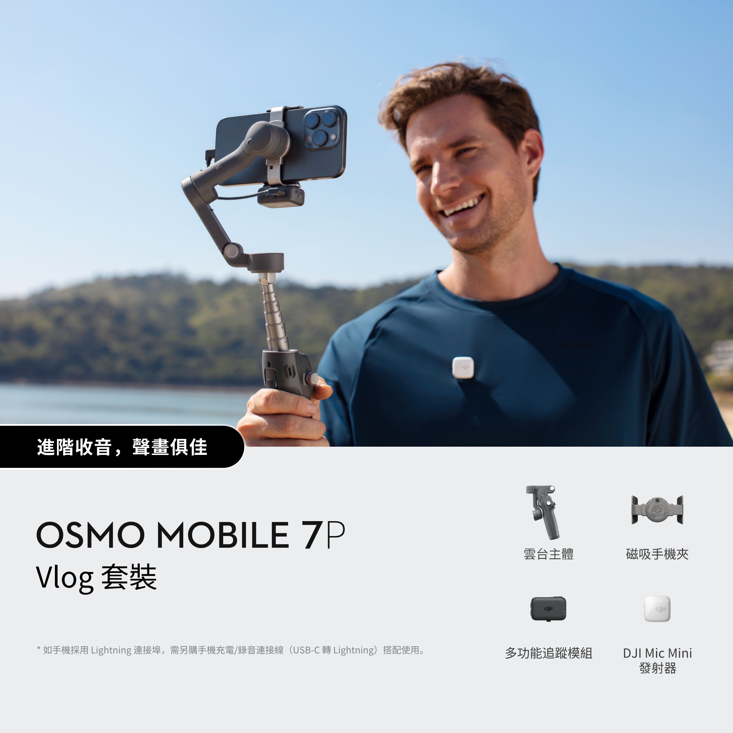 Osmo Mobile 7P 輕巧便攜,採 DJI 第七代防抖技術,搭配智能跟隨 7.0。其多功能追蹤模組集多項功能於一身,不依賴 app 即可跟拍。自帶延長桿與三腳架,續航長達 10 小時,USB - C 接口可為手機充電,助你輕鬆拍出高水準影片 。